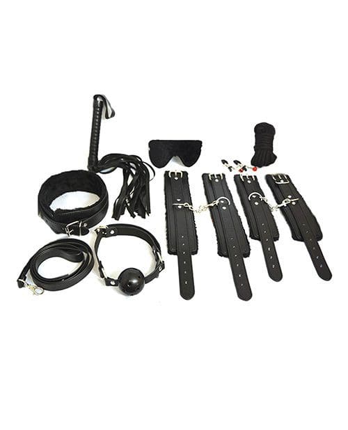 For those who want a head start on all things bondage, this kit includes a little bit of everything. Fleece-lined PVC wrist cuffs, ankle cuffs and collar make for a comfortable intro to a personal bondage fantasy.