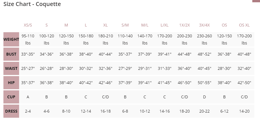 Sheer Thigh High Stocking. From Coquette. Color: Black One size. Weight: 120lb – 150lb. Bust: 36in. – 38in. Waist: 28in. – 30in. Hip: 38in. – 40in. Cup: B. Dress: 6-12.